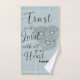It was advertised as NAVY blue and the color sent was greenish blue. I am disappointed in this product. Quality and printing are great as are all my other orders. As you can see in picture the tea towel on right is perfect, hand towel not so much! Print was awesome and just as ordered
