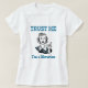 Funny t-shirt for a librarian. Features a retro looking librarian wagging her finger as if too say "shh" and the words trust me I'm a librarian