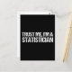 Trust Me, I'm a Statistician written in white on a black background. A cool occupation gift for someone who does data collection and analysis.This profession uses statistics to make decisions.