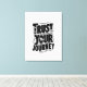 This bold, artistic typographic design features the motivational quote "TRUST YOUR JOURNEY" in a striking vertical layout. Each word is crafted with intricate outlines, wavy details, and dynamic curves for a flowing, eye-catching effect. Perfect for inspiring dreamers, creatives, and anyone embracing personal growth and self-discovery.
