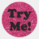 Try Me Glitter Black Pink Tester Sample Container Classic Round Sticker