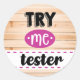 Try me tester label stickers are perfect for labelling products to invite potential customer to try. This product is fully customizable and the design can be transferred on to any other product. Add your business logo to these designs for further customization. More coordinating products available!