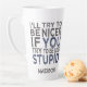 “I’ll try to be nicer if you try to be less stupid”. See my store for more items with this design.