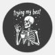 Trying My Best Funny Skeleton Coffee Halloween Classic Round Sticker