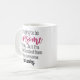 Funny quotation mug for birthday gifts, holidays, gift exchanges and grab-bags. Chic calligraphy in charcoal grey and fuchsia.