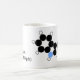 Relive o-chem (or currently live it) with a LabKitty amino acid mug set! Each mug contains one of the 20 amino acids, rendered in loving two-dimensional detail. Relative molecule sizes and bond angles as best I could suss from my build-a-molecule kit results. Single, double, and triple bonds are not distinguished -- you'll just have to count what's stuck to what. And, of course, you get the classic build-a-molecule kit colour scheme: carbons in black, oxygens in red, nitrogens in baby blue, sulphurs in yellow and hydrogens in white. On the flip side is the amino acid name and the chemical formula of the side chain. This one is tryptophan. Get valuable chemistry review every time you slurf! Customizable.