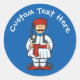 Greek Evzone (tsolias) cartoon, wearing red fez, fustanella and tsarouchia. Custom background colour. Custom text.