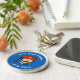 Head of Greek Evzone (tsolias) cartoon, wearing red fez. Custom background colour. Two text fields on circle.