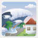 A tsunami wave about to wash over a house. This design looks really effective on these Stickers