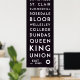 Affiche de style "rollsign" de la Toronto Transit Commission. Les lignes de métro de Yonge s'arrêtent sur cette ligne. Liste des stations sur l'affiche : signalisation "Southbound", Eglinton, Davisville, St. Clair, Summerhill, Rosedale, Bloor, Wellesley, College, Dundas, Queen, King, Union, signalisation "Exit and Buses"