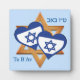 Stylish TU B'AV Valentine Jewish Day of Love plaque with CUSTOMIZABLE TEXT for men and women who are celebrating the Jewish Valentine holiday of Tu B'Av, also known as the Jewish Day of Love. The design shows the Star of David flag of Israel in the shape of two hearts, with a larger Star of David in the background. The Hebrew text (top) is translated 15th of Av. All text is CUSTOMIZABLE so you can replace with names or other text (or delete).