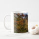 Beautiful autumn morning along the Tualatin River in Tualatin, Oregon. Pretty colourful fall leaves reflecting in the still waters, with an old railroad bridge that extends over the river. Photo taken October 2017.