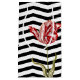 Old meets new in this vibrant combination of an old botanical tulip print from the 17th century placed on a bold black and white chevron stripe pattern. The results are a beautifully dramatic combination.