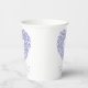 Hand-drawn botanical tulips wreath art wedding paper cups on white with blue purple and light blue shades. White tulips circling your own monogram initials. Other colours and matching items are available. © Original floral ink drawing and design by Sarah Trett for www.mylittleedenweddings.com on Zazzle.
