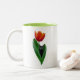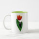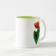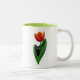 This spring mug features a black cat hiding in the leaves of an orange tulip flower.