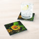 This glass coaster displays photography of yellow tulips, taken in Shropshire, where I grew up. The yellow tulips are blossoming beautifully and the light shining on them brings out their color.