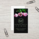 A still life photograph of fresh cut pink tulips, with long green stems, placed down on black fabric. Copyright ©Kimberly J Tilley. Customize this business card by updating the template with your information and logo.