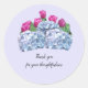 Pretty soft blue hydrangeas and lovely deep pink tulips accent this thank you.