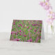 A card with an attractive photo of a bed of tulips and other flowers. Left blank inside, but can be customized.