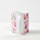 This classic white coffee mug is shown with a lovely tulip's art print.
