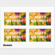 Colourful tulips on a flowerbed. All the rainbow colours present. Bright and positive floral scene. Rectangular sticker. You can change or delete the template text Happy birthday!