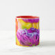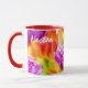 Colourful violet, purple, pink tulips on a flowerbed. Virtually all the rainbow colours present. Bright and positive floral scene. Coffee mug. Customizable. You can change the image and you can change the template text Nectar. Have fun!