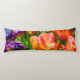 Colourful violet, purple, pink tulips on a flowerbed. Virtually all the rainbow colours present. Bright and positive floral scene. Body pillow for anyone.