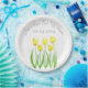 Tulips flowers watercolor Yellow Rustic Wedding Paper Plate