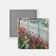 This magnet has tulips garden white picket fence photo Cape May NJ, I took this photo of the tulips garden along a white picket fence in Cape May, NJ in April 2012. It is filled with beautiful blooms of red, pink, and orange tulips, a beautiful Victorian garden for springtime!