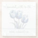 Add a touch of personalized elegance to your wedding reception or home décor with these customizable glass coasters featuring a beautiful Delft blue tulip design. The delicate watercolor illustration of the iconic blue tulips brings a sophisticated and romantic touch, while the durable glass provides a stylish and practical surface protector. Personalize these coasters with your names, wedding date, initials, or a short message to create a unique wedding favour, a thoughtful gift, or a special addition to your own tabletop.