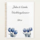 A wedding planner with a beautiful cover featuring two delicate tulips in Delft blue colours, symbolizes love and new beginnings. The names of the bride and groom, elegantly scripted in flowing calligraphy, take centre stage, creating a personal and romantic touch