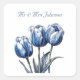 Celebrate your union with this elegant wedding sticker featuring a beautiful watercolor illustration of three blue tulips. The design exudes a delicate and sophisticated charm, perfect for adding a personal touch to your wedding favours, stationery, or décor. The customizable text at the top allows you to easily personalize the sticker with your names, wedding date, or a special message, making it a unique and memorable keepsake for your special day. The soft blue hues and floral design evoke a sense of romance and timeless beauty.