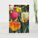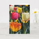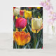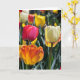 Colourful tulips are illuminated by the late afternoon sun. Note that this card may be customized with your own personal inscription.