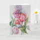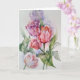 Delicate tulips in shades of pink and purple are beautifully arranged with soft green leaves, showcasing a gentle watercolor style. The blending of colours creates a harmonious and serene floral composition.