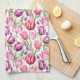 This kitchen towel is shown in a lovely tulip's art print design.