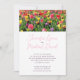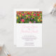 Field of multicolored tulips in spring, pink, purple, yellow. Floral party invitation.