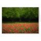 A beautiful contrast of colour in nature. Coral tulips in full bloom at the Wooden Shoe Tulip Farm in Woodburn, Oregon, with lush green rows of trees in the background. A beautiful Spring morning! Photo taken April 2014.