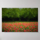 A beautiful contrast of colour in nature. Coral tulips in full bloom at the Wooden Shoe Tulip Farm in Woodburn, Oregon, with lush green rows of trees in the background. A beautiful Spring morning! Photo taken April 2014.