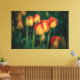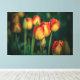 Wrapped canvas art is shown with a photo print of beautiful yellow and red tulips.