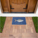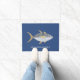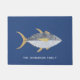 Fun Tuna fish with a cheeky smile, on a nautical navy blue background. Original art by Nic Squirrell. Change the family name or text to personalize.