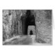 Pendant une pittoresque route sur Needles Highway dans les Black Hills du Dakota du Sud, nous sommes tombés sur un tunnel très bas et étroit. La silhouette noire d'une moto et de son cavalier est visible en passant par le tunnel de Needles Highway. Cette photo en noir et blanc du paysage rocheux et du motard a été prise dans le parc de Custer State.