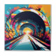 A vibrant digital painting of the Tran Tunnel i. The tunnel is covered in colourful graffiti. The painting captures the beauty and energy of the tunnel