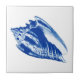 Ceramic tile in a vintage turban conch shell illustration, digitally coloured and enhanced, in deep indigo blue on a white background