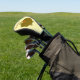 This turkey design golf club head cover is an accessory that you slide over the head of a golf club for protection against knocks whilst sitting in your golf bag. Made out of polyester, cotton, and marine vinyl with a choice of different piping colours. You can customise this golf club head cover with any text. Should you require any help with customising then contact us through the message link on this page. Turkey design golf club head cover.