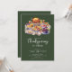 This rustic Thanksgiving dinner invitation features a table set for Thanksgiving dinner with turkey and all the fixings, set on a dark green background. The invitation is simple and elegant, with the date, time, and location of the dinner in a tasteful font. The Thanksgiving table setting adds a touch of warmth and ambiance, and the dark green background adds a touch of sophistication. The overall design is perfect for celebrating the Thanksgiving holiday with your loved ones in a rustic and cozy setting.
