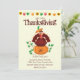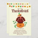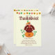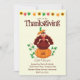 Cute turkey sitting in a pumpkin for Thanksgiving. Maple leaf and sunflower garland on a pale yellow background.
