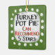 A funny typographic design that says "Turkey Pot Pie: Can Recommend, 5 Stars". It's black and red text on a white rectangle with funky, playful white dots surrounding it, all on a green background.
