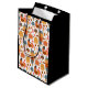 A gift bag with a seasonal fall pattern, Corn, mushrooms and flora. Along with turkeys and scarecrows to honour the Thanksgiving tradition.