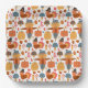 Paper plates with a seasonal fall pattern, Corn, mushrooms and flora. Along with turkeys and scarecrows to honour the Thanksgiving tradition.