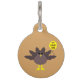 This awesome dog tag features a funny cartoon of a turkey with big black eyes, a small yellow beak and tail feathers sticking up. The feet are facing in opposite directions making the turkey look clumsy. The turkey is holding a yellow balloon with a message inside that says “it’s turkey time”. This is a fun thanksgiving party design. There is customizable text on the back for you details making sure if your dog ever gets lost it can be returned home safe and well.